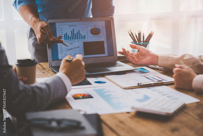 Financial analyst analyzes businessman investment consultant analyzing company financial report balance sheet statement working with documents graphs. Concept picture for stock market, office, tax