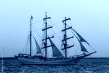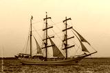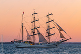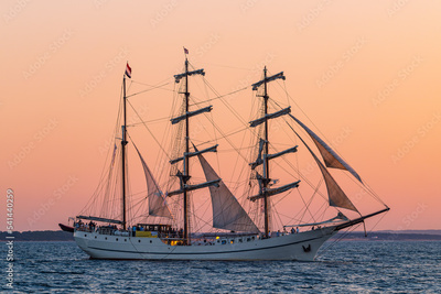 Segelschiff im Sonnenuntergang auf der Hanse Sail in Rostock