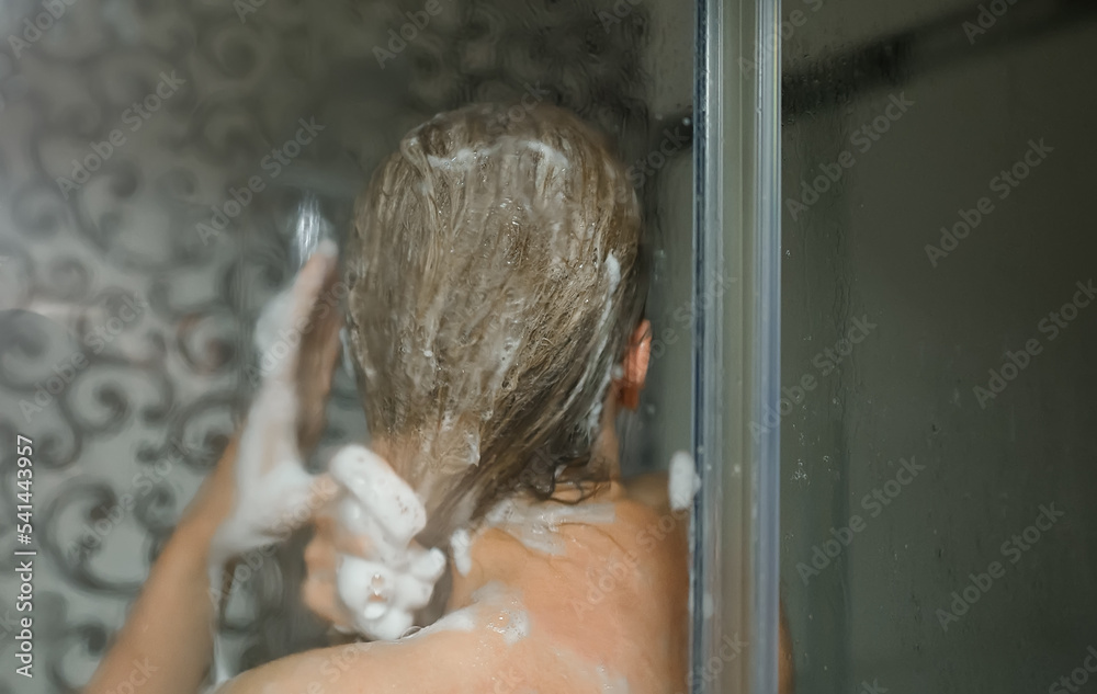 Woman washing herself in the shower.