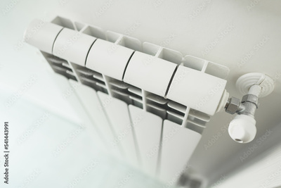 Metal radiator with adjustable valve inside the apartment.