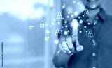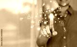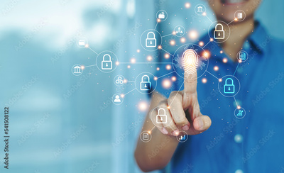scan finger Data security concept, Woman scan finger print unlock on digital Data security enter, Data security concept design for digital data technology