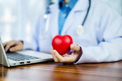 Doctor hands holding red heart, health care, love, organ donation, mindfulness, wellbeing, family insurance and CSR concept, world heart day, world health day, world mental health day, praying concept