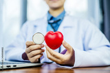 Doctor hands holding red heart, health care, love, organ donation, mindfulness, wellbeing, family insurance and CSR concept, world heart day, world health day, world mental health day, praying concept