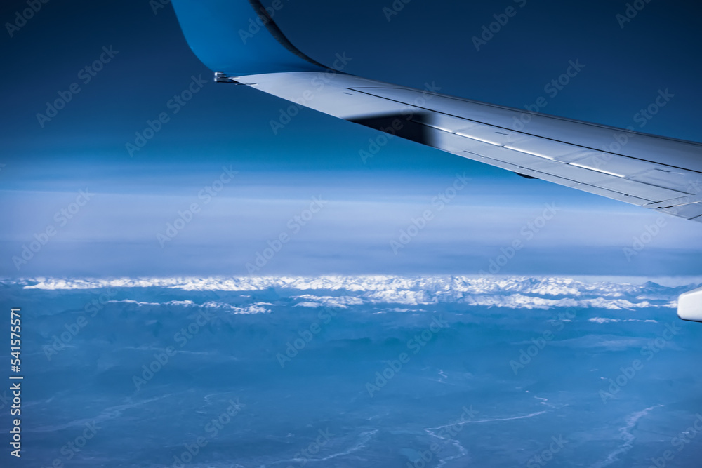 The wing of an airplane landing.