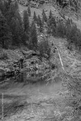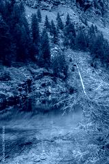 The crystal clear water of the Blue Lake of Ayes, Italian Alps
