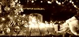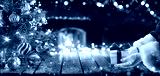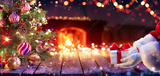 Santa Claus Give Present Under Christmas Tree - Gift Box and Ornament In Interior Home With Abstract Defocused Lights At Night