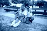 Portrait of happy dad and son posing on camera in park. Smiling happy man and boy sitting on pavement showing cool gestures and looking at camera. Fatherhood, leisure and taking photo concept