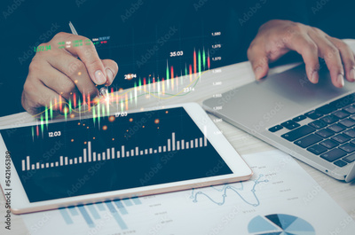 Businessman touching virtual screen graph stock market indicator currency exchange financial management forex. business profit chart trade growth index economy concept.