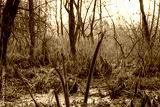 Bagienny krajobraz dzikiej puszczy, jesień, las