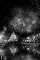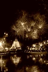 Fireworks Sukhothai Loy Krathong Festival at Sukhothai historical park , Sukhothai, Thailand.