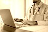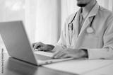Doctor using computer working in hospital, Doctor using computer checking data patient document, Doctor using computer for health care hospital background