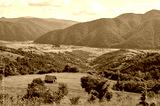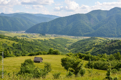 Wonderful Carpathian rural summer scene with village on the valley near the mountain ridge covered green forest. Kolochava, Transcarpathia, Ukraine