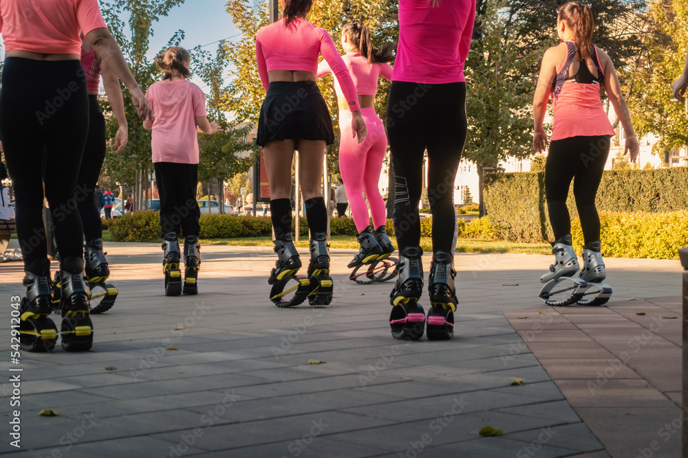 Group fitness classes of girls on the street.