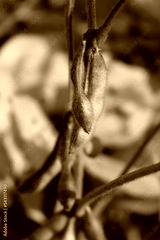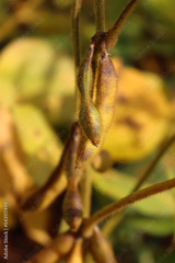 Close-up of bright yellow soy plant with soybean pods on autumn season. Agricultural soy field
