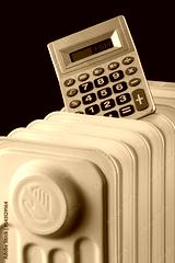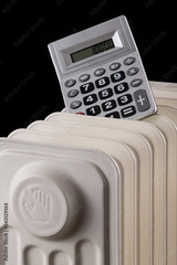 Conceptual plot about heating prices with calculator and electric radiator on black background