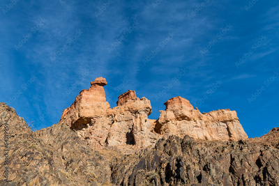 Picturesque mysterious castles in the Charyn Canyon (Kazakhstan) on an autumn day