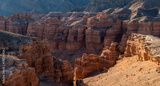 Picturesque mysterious castles in the Charyn Canyon (Kazakhstan) on an autumn day