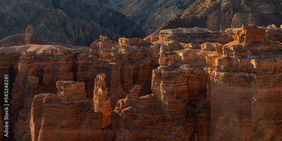 Picturesque mysterious castles in the Charyn Canyon (Kazakhstan) on an autumn day