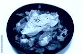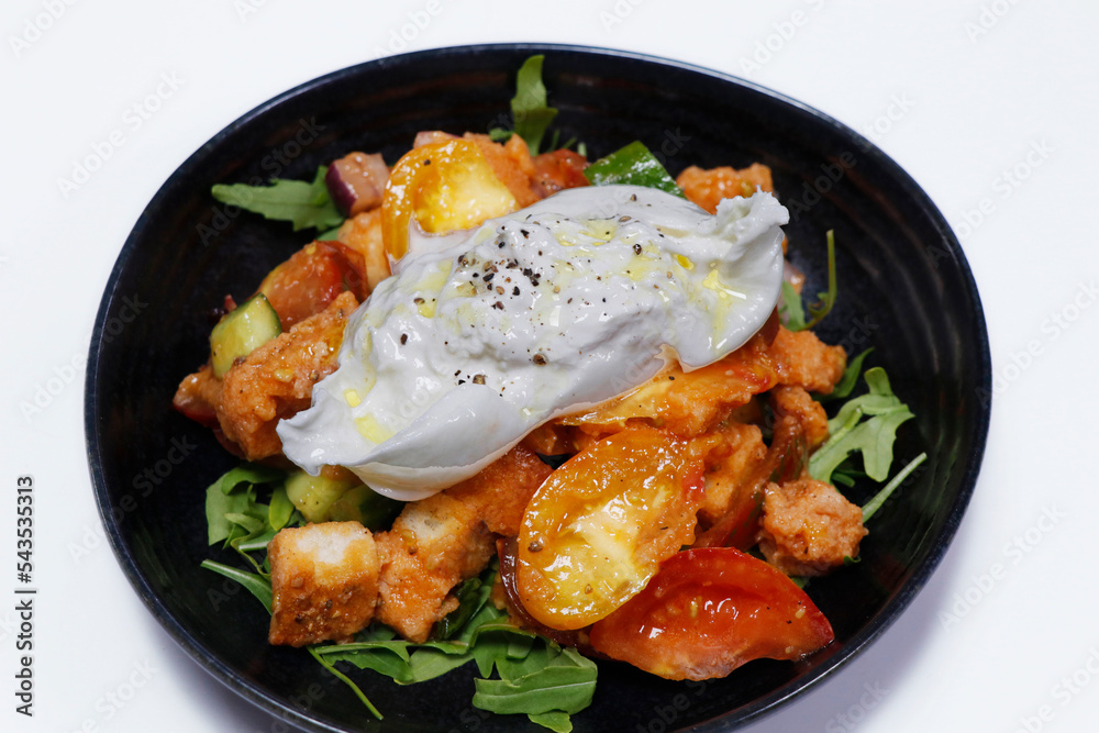 heirloom or heritage tomato and burrata or mozzarella cheese salad in a bowl with white background