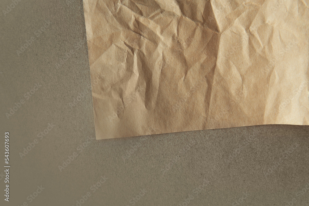 Creased Craft light brown color recyclable organic folded paper bag texture on solid brown background