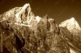 Beautiful view of Mt.Taboche (6495m) and Mt.Cholatse (6440m) on the way to Everest base camp trek in Nepal.