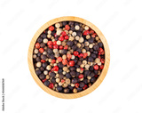 Mixed of peppers hot, red, black, white in wood bowl isolated on alpha layer
