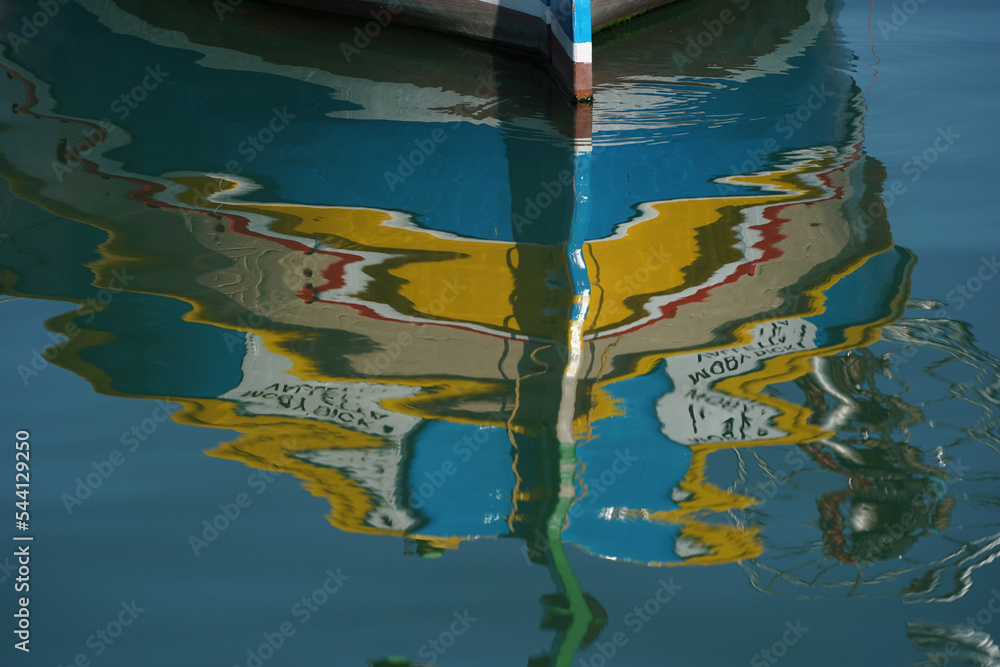 malta colorful painted fishing boat in marsaxlokk village
