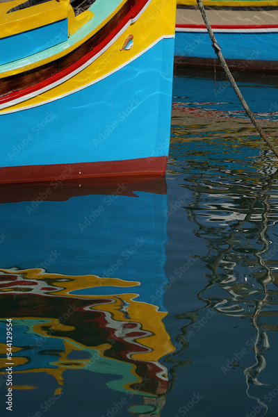 malta colorful painted fishing boat in marsaxlokk village