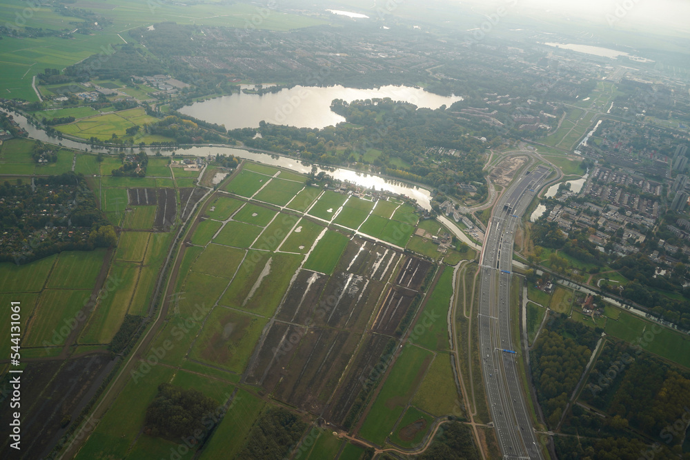 amsterdam channels aerial panorama landscape while landing