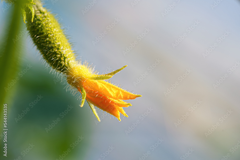Inside of greenhouse with young cucumbers.