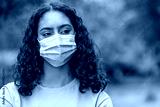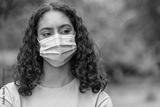 African American biracial female young woman wearing surgical face mask in COVID-19 Pandemic