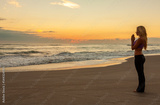 Fit Woman or Girl Practicing Yoga on Beach At Sunrise or Sunset