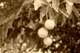 Fruits and leaves of Oriental plane, Platanus orientalis