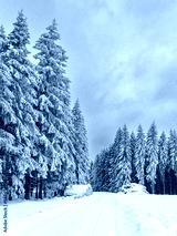 Landschaft im Winter im Thüringer Wald in der Nähe von Schmiedefeld am Rennsteig