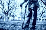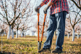 Orcharding. Gardener pruning tree with a shears in the orchard, close up photo. Agricultural concept