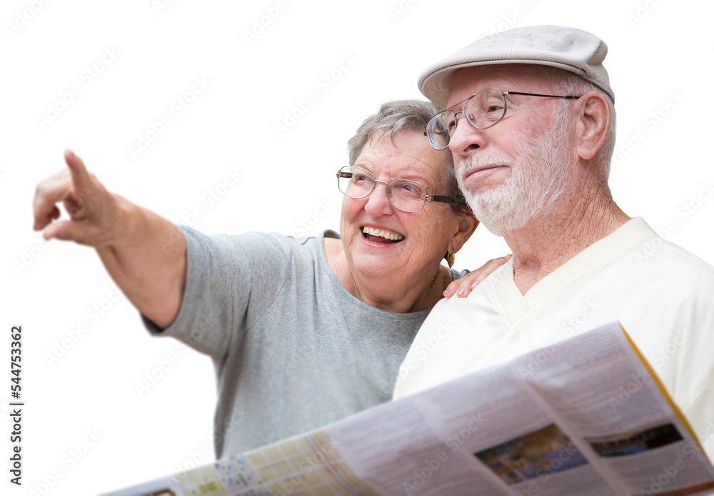 Transparent PNG Happy taveling senior couple with brochure map enjoying the sites.
