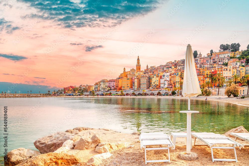Blick auf die Stadt Menton, Côte d'Azur, Frankreich