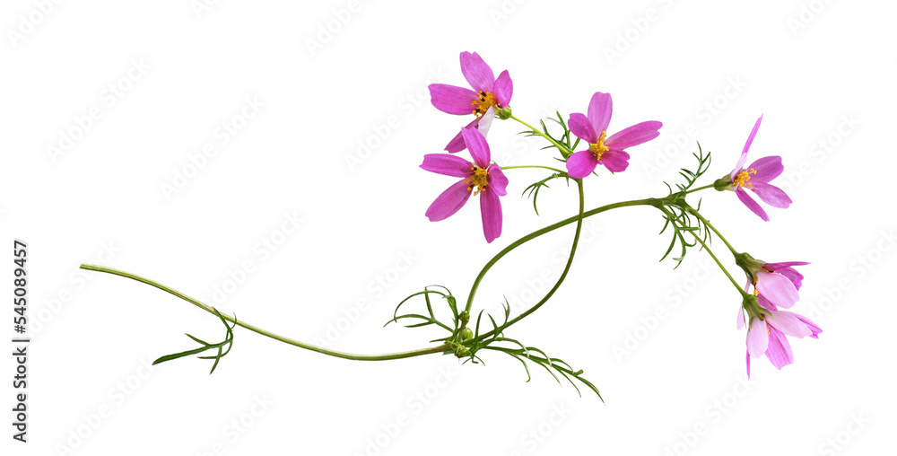 Pink cosmos flowers in a floral arrangement isolated on white or transparent background