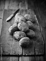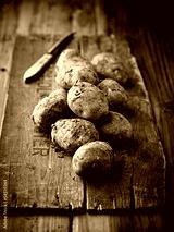 New potatoes on wooden background