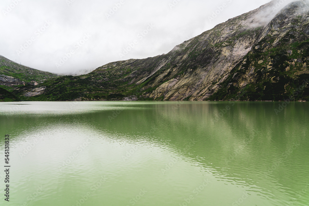 Panoramic view of the Grimsel reservoir in Switzerland.