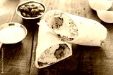 Breakfast burrito with sausage, eggs, hashbrown and cheese