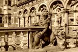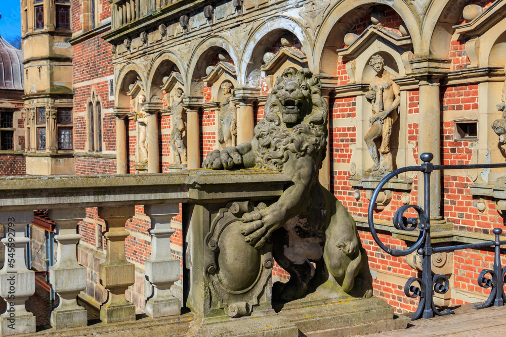 Statue of lion at the entrance to Frederiksborg castle in Hillerod, Denmark