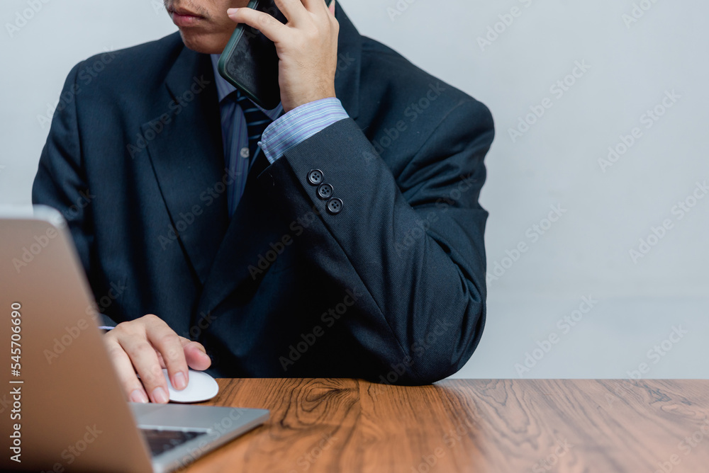 businessman working on laptop and talking on the phone in modern office.copy space.