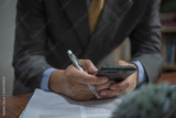 businessman hand smart phone and document contract and workplace report marketing on desk.