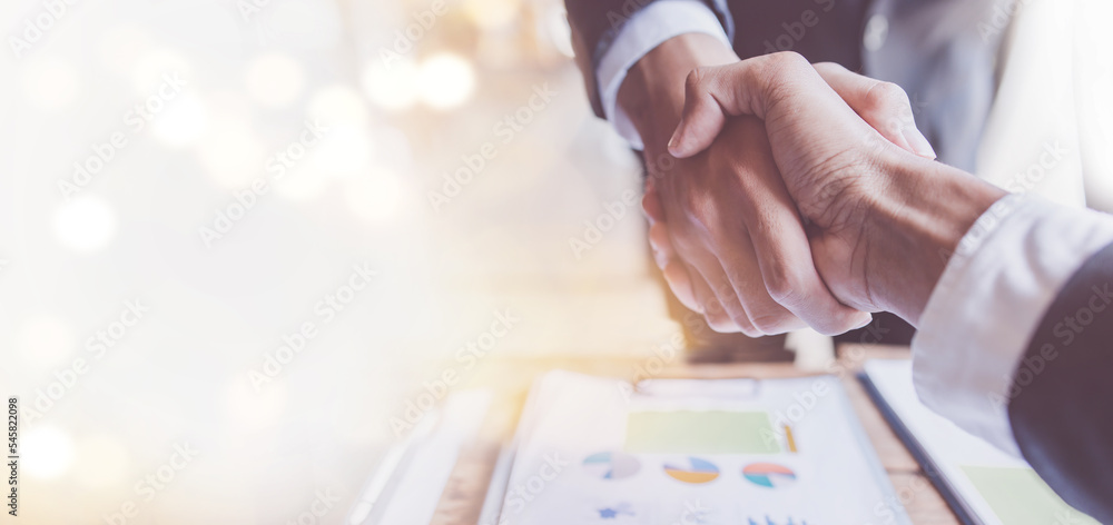 Business handshake for teamwork of business merger and acquisition,successful negotiate,hand shake,Asian businessman shake hand with partner to celebration partnership and business deal concept