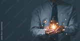 businessman or man people holding lamps, Arabic lanterns decorated with candles lit up at night on a Muslim Ramadan. Eid al Fitr festival, Eid al Adha festival Muslims of Islam have Arabic lanterns.