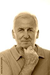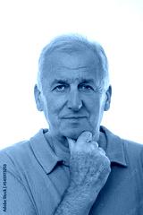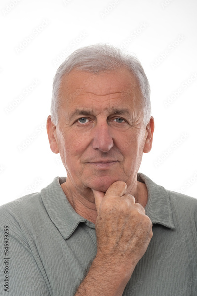 Positive older man in green polo looking at camera on isolated white background.