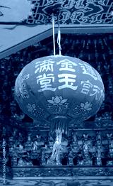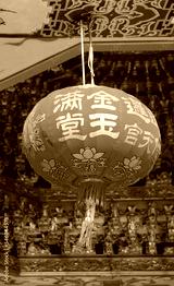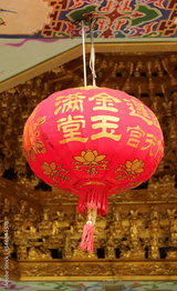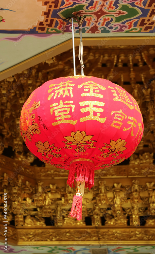 Lunar New Year Hanging Lantern with the Greeting Words Meaning WEALTH in a Chinese Temple