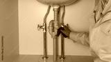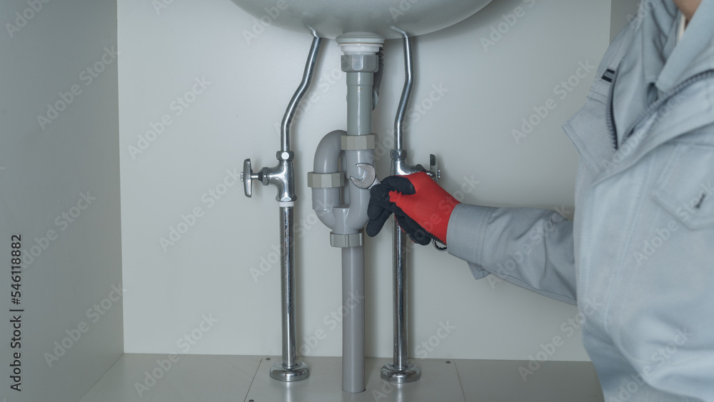洗面台下の配管修理イメージ|スパナを持った作業員
