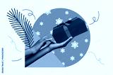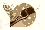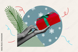 Artwork magazine picture of arms holding packing delivering x-mas present isolated drawing background